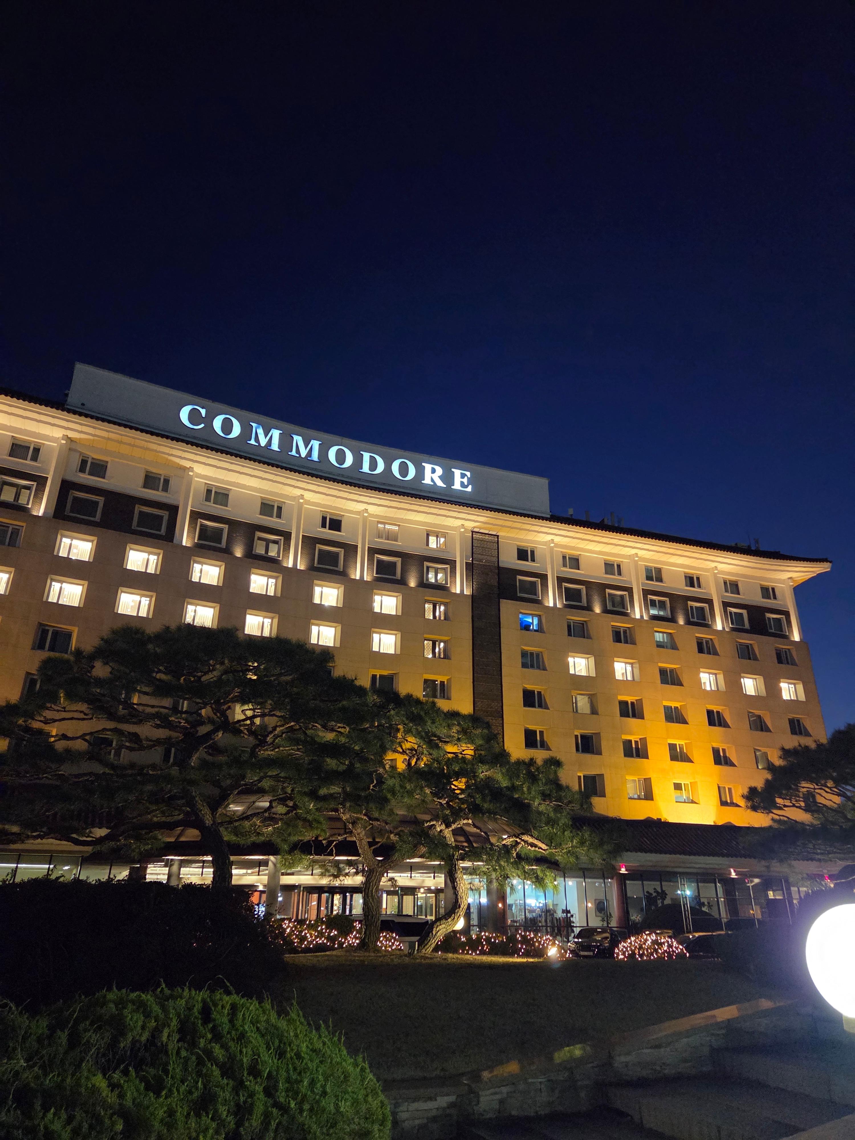 코모도호텔은 경주 보문단지 안에 위치해 있어, 경주역에서 차로는 30분, 대중교통으로는 1시간 정도 걸립니다. 황리단길과는 조금 멀지만 옛경주를 관광하기에는 부족하지 않은 위치입니다. 호텔 외관은 은은한 조명이 분위기를 한층 업그레이드시켜 주어 저녁에 체크인할 때 더욱 아늑하고 편안하게 느껴졌어요. 또한, 산업유산으로 지정된 역사적인 건물이기도 하여, 경주 여행의 의미를 더해주는 장소였습니다. 로비도 엄청 넓었어요.