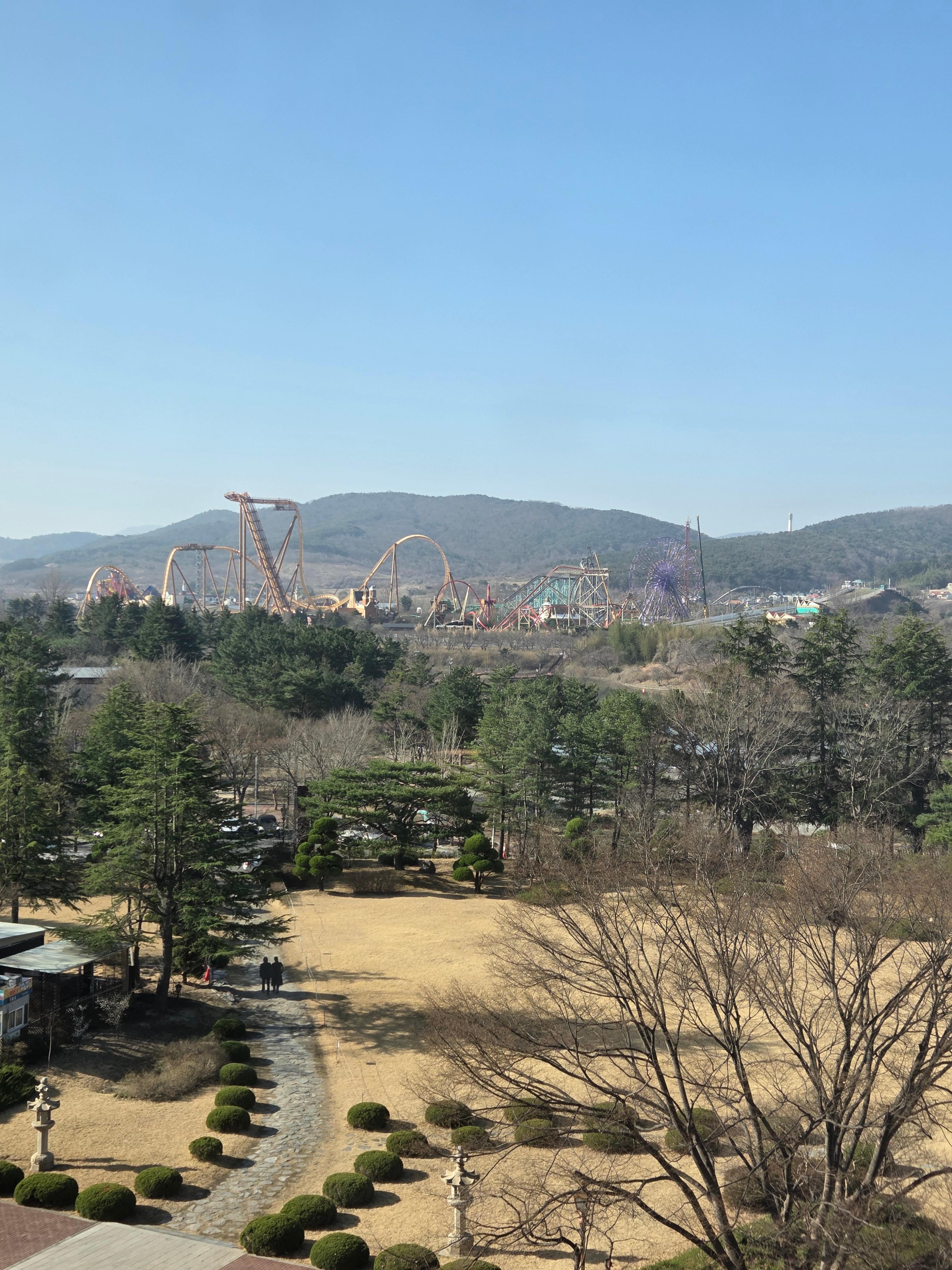 좋은 객실을 배정해 준 건지는 잘 모르겠지만, 호텔 객실에서 호수 뷰를 즐길 수 있는 점이 굉장히 좋았습니다. 창문 밖으로 보이는 보문호수의 경치가 특히 인상 깊었고, 아침 일찍 일어나면 호수 주변의 조용한 풍경을 감상할 수 있어 여행의 여유로움을 만끽할 수 있었어요. 창 밖으로는 바로 경주월드의 모습이 보입니다.
