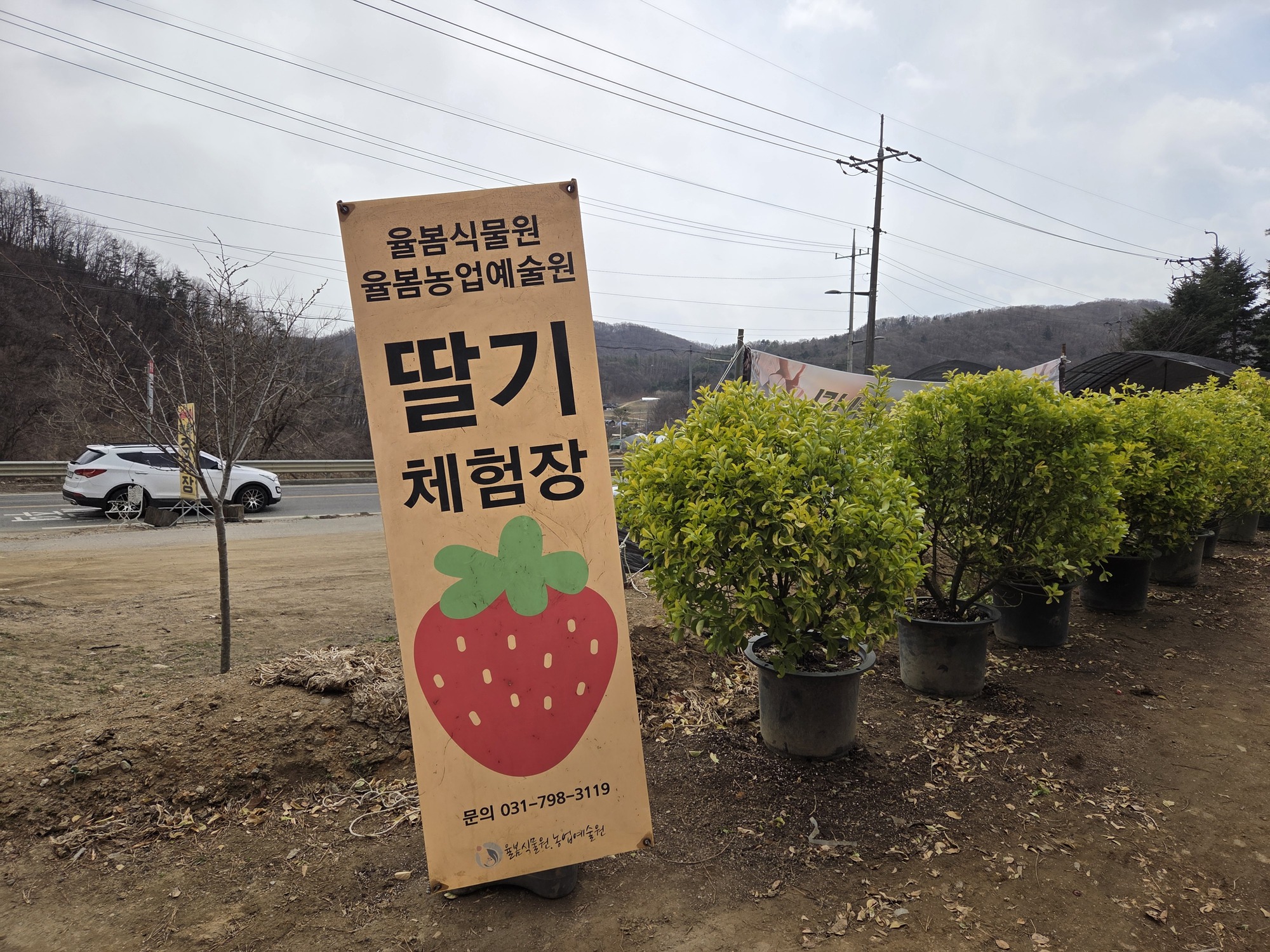 주말, 아이 손을 잡고 설레는 마음으로 율봄식물원으로 향했습니다. 오전 11시쯤 도착했는데, 12월부터 4월 중순까지는 후문 매표소만 운영하니 방문 전에 꼭 확인하세요! 넓은 주차장에 편하게 주차를 하고, 매표소에서 식물원 입장권을 구입한 후, 미리 예약해둔 딸기 체험 장소로 이동했습니다.